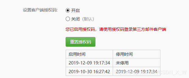 - 设置中选择 客户端授权密码 这一栏并选择开启,并记住这个授权码,开启后如下:
